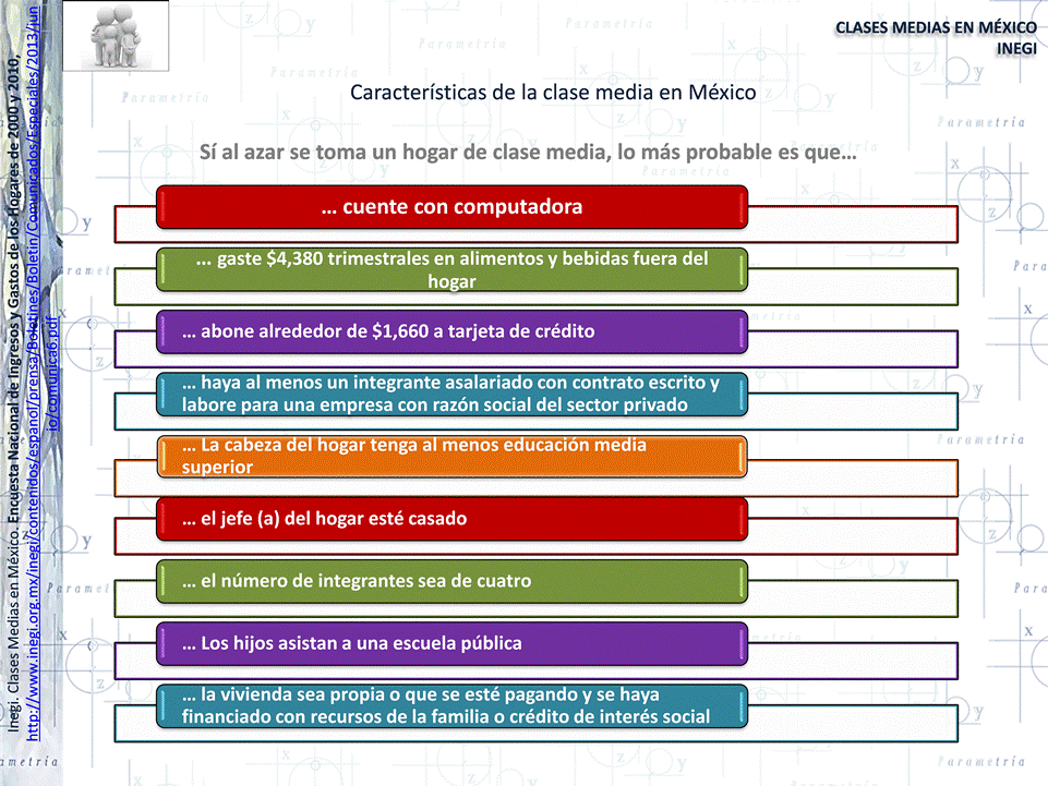 INEGI.Clases medias en México. 12 de junio de 2013 http://www.inegi.org.mx/inegi/contenidos/espanol/prensa/Boletines/Boletin/Comunicados/Especiales/2013/junio/comunica6.pdfFecha de consulta 18 de junio de 2013