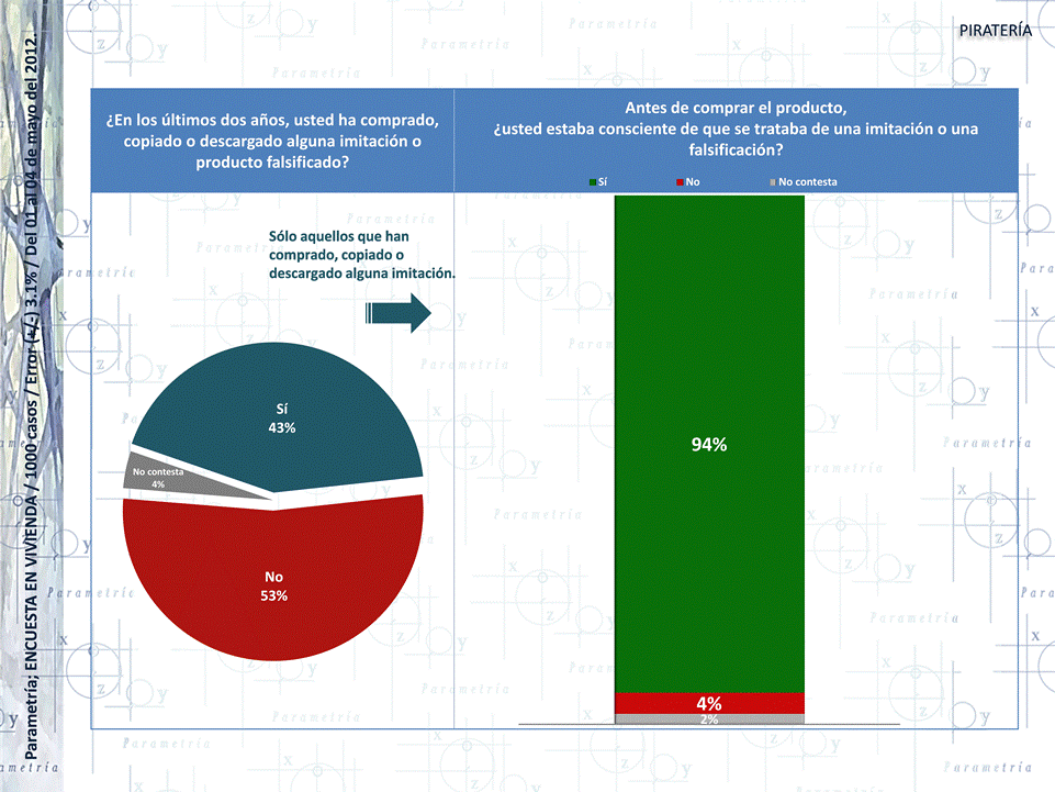 Cuatro de cada diez mexicanos (43%) acepta que en los últimos dos años ha adquirido (a través de compra, copia o descarga) algún producto falsificado.