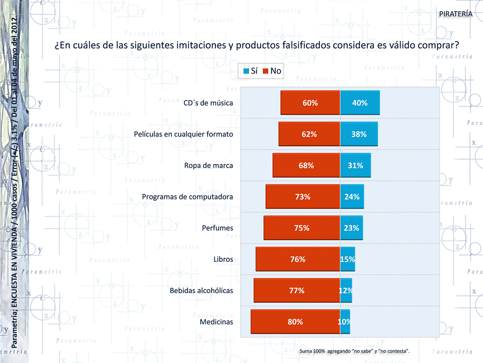 Apenas 23% dice que es válido comprar perfumes pirata. Sólo el 15% legitima la compra de libros falsificados.