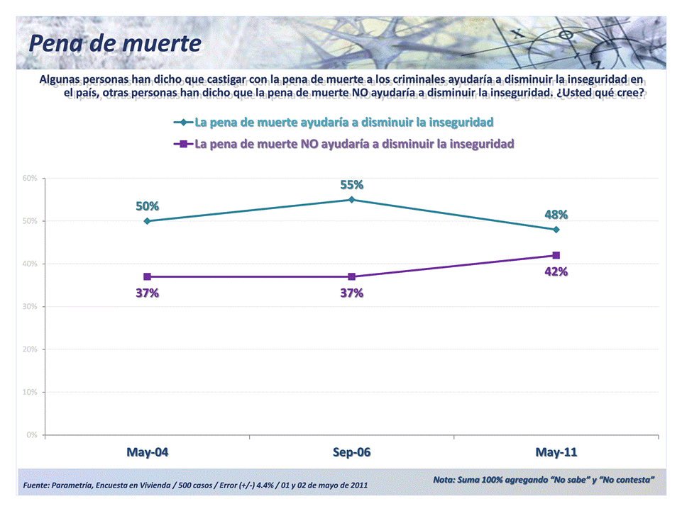 Son cada vez más los mexicanos que no ven en la pena de muerte una forma de disminuir la inseguridad.