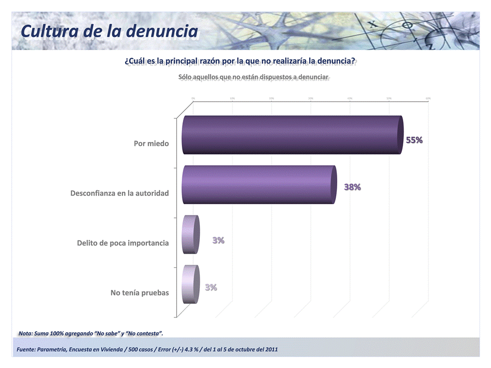 Por miedo, desconfianza, baja expectativa de justicia, y hasta desconocimiento de los procedimientos, un tercio de los mexicanos no está dispuesto a denunciar la posible comisión de delitos.