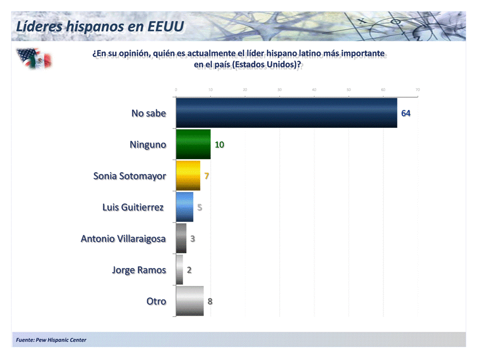 De acuerdo con el Pew Hispanic Center, seis de cada diez hispanos en Estados Unidos desconocen si hay algún líder latino actualmente en ese país.