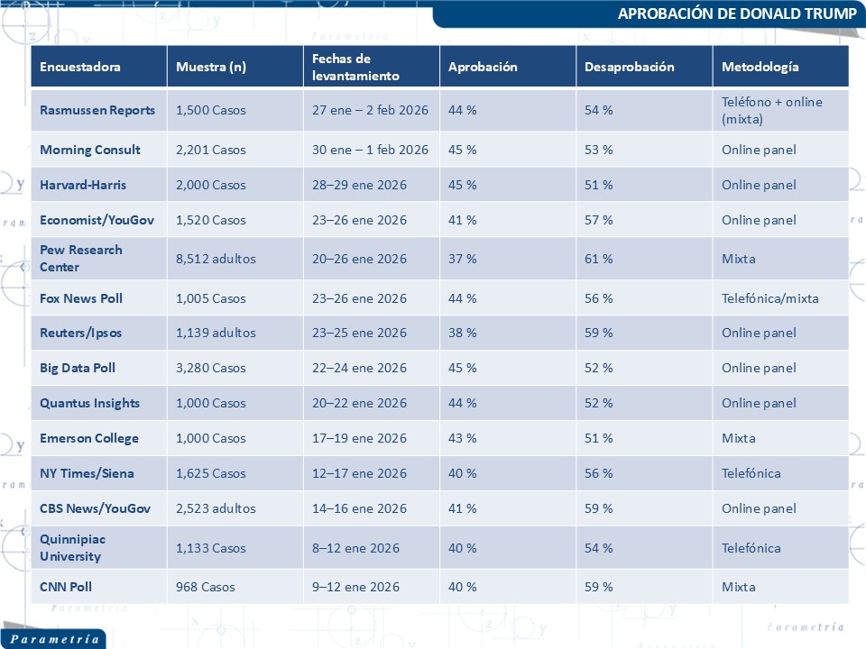 En semanas recientes se han publicado numerosas mediciones para evaluar la administración del presidente Trump. La mayor parte de estas encuestas se realizaron a un año de haber asumido el cargo. Por ello, la mayor parte de ellas se realizaron alrededor del 20 de enero. Luego aparecieron otras, a propósito de acontecimientos recientes en la ciudad de Minneapolis, que por su dramatismo llamaron la atención de la opinión pública.
