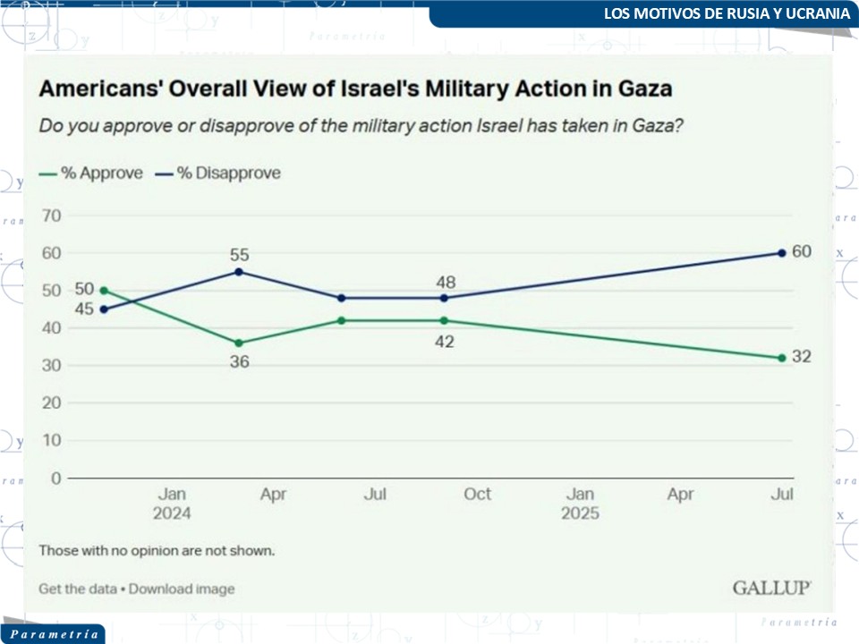 Tal vez una forma de entender esta guerra o invasión, o porque las negociaciones son tan difíciles, podría entenderse desde el análisis de opinión pública. Finalmente es en la opinión pública en la que se reflejan los intereses, preferencias o niveles de tolerancia de los ciudadanos a las acciones de sus gobiernos. Y para este caso en particular las opiniones de sus aliados o las fuerzas que los apoyan o eventualmente podrían enfrentar.